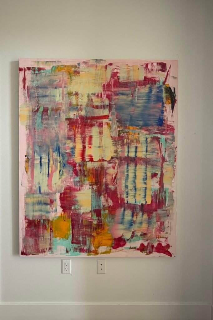 I explore the harmony found in process and simplicity. My home at the Nash in University Heights is both studio and subject. Through its changing light and quiet rhythm, I have a great frame: each day I see the mountains, the sunrises, the architecture of the city, flocks of birds that pass, and the palm trees that move with the wind. Each canvas reflects that sense of balance and tranquility, a space where my mind can wander and rest. The work is a quiet conversation between the visible world and an inner calm.